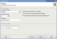 If you choose to export to single file on step 2 you'll be able to choose the format of the exporting text. The formatted text will keep all notes formatting in the resulting file, while the plain text will destroy all text formatting leaving only the notes text itself. Check specify on next step some additional export options if you want to change the options specific to HTML and Plain text exporting.