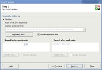 My Notes Center can export pictures from notes and save it in PNG format, placing into folder named compatible with Windows Explorer. Also due to HTML doesn't support tabs you may check to convert tabs to non-breaking spaces. The default HTML page background will be white until you check the use default note background as page background. Default note background color may be set in options dialog. If you're exporting the notes to plain text format, you may tell My Notes Center to format paragraphs by inserting line-breaks. When exporting to single file you may choose how to separate note contents: by nothing, by hard page break (not actually displayed by editor, but affects printing) or by custom separator line which may be entered in the edit box below or chosen from the drop-down list. Also it is possible to choose the separator font and align (center or left by default). My Notes Center can insert the specified text before and after each exported note. You may enter a special macros in this text that will be substituted according to macro meaning. As for custom separator you may choose the font and align for the inserted text.