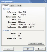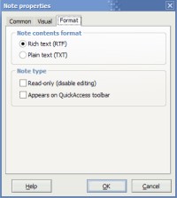 The Note propertires dialog consists of three pages: Common, Visual and Format. All these pages allows to view and change current note properties.
