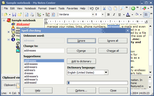 My Notes Center 1.5.3 is available. With a new spell checker (see Add-ons on download page).